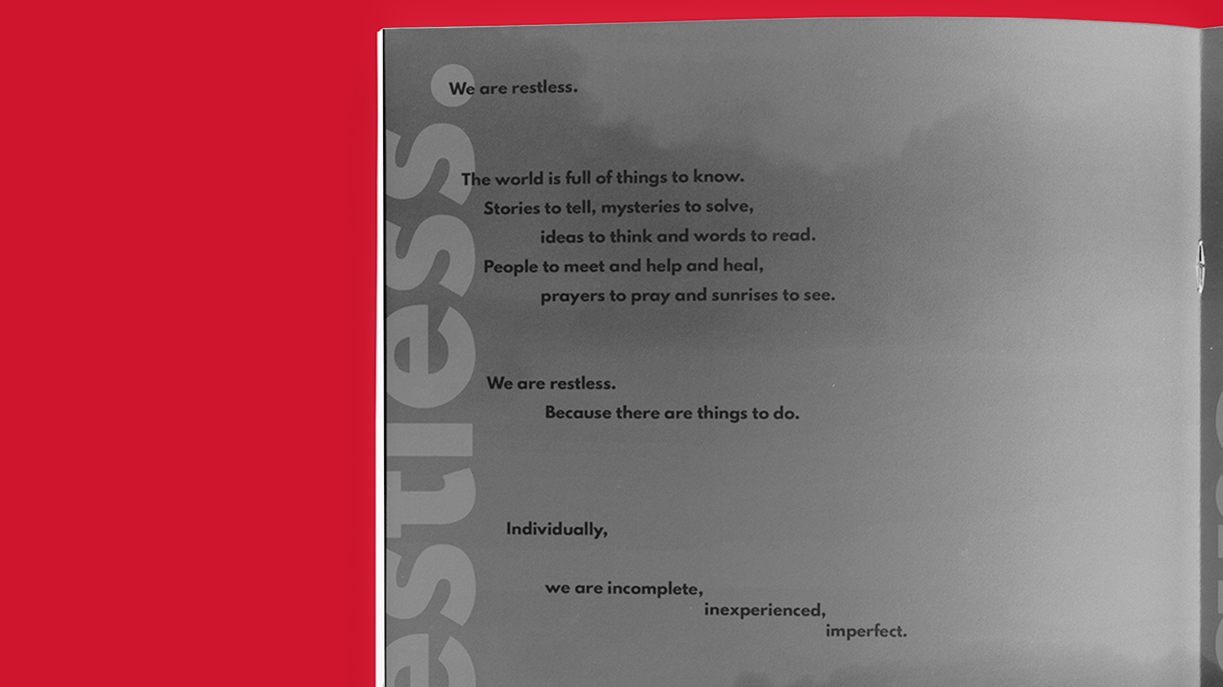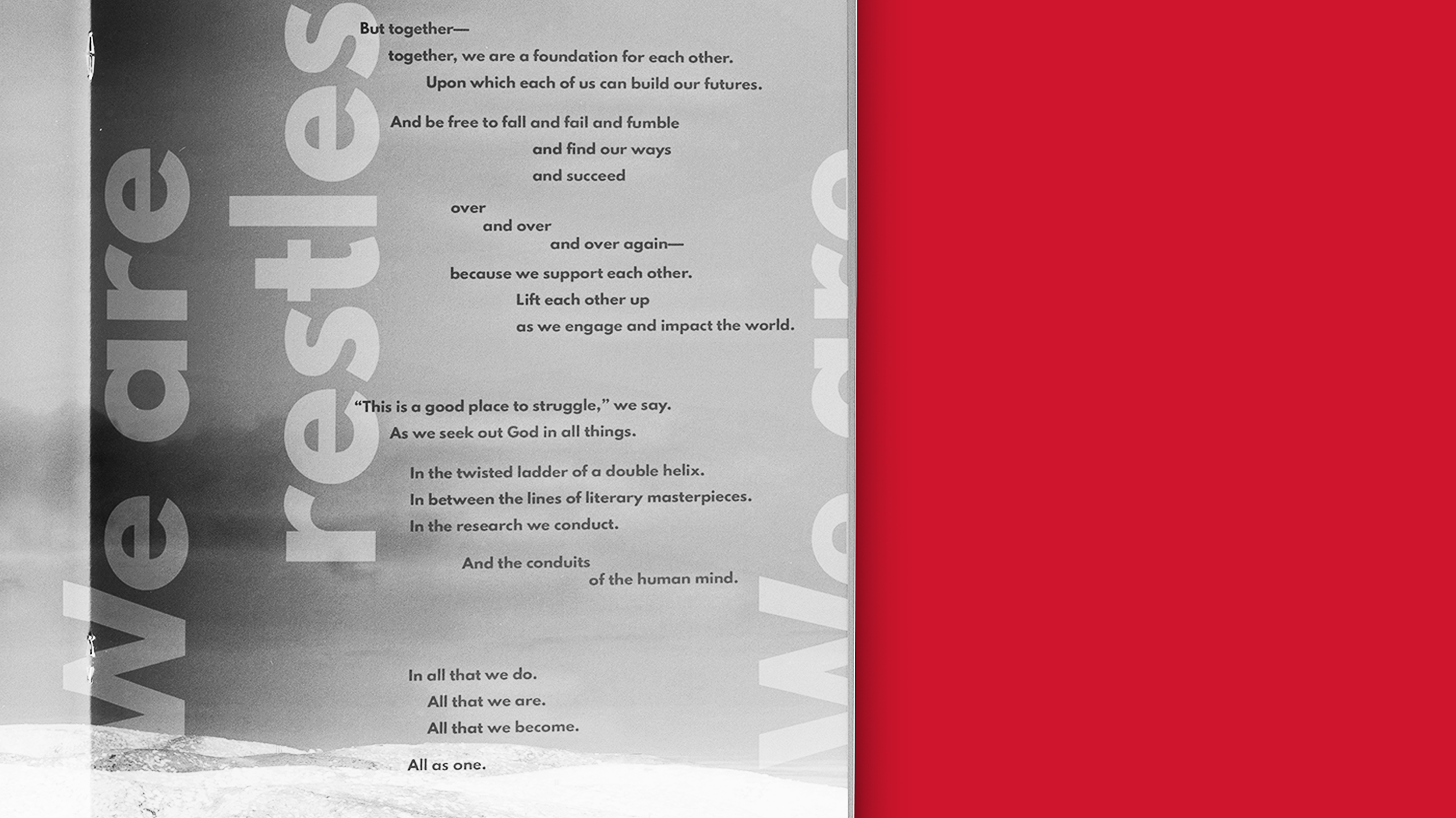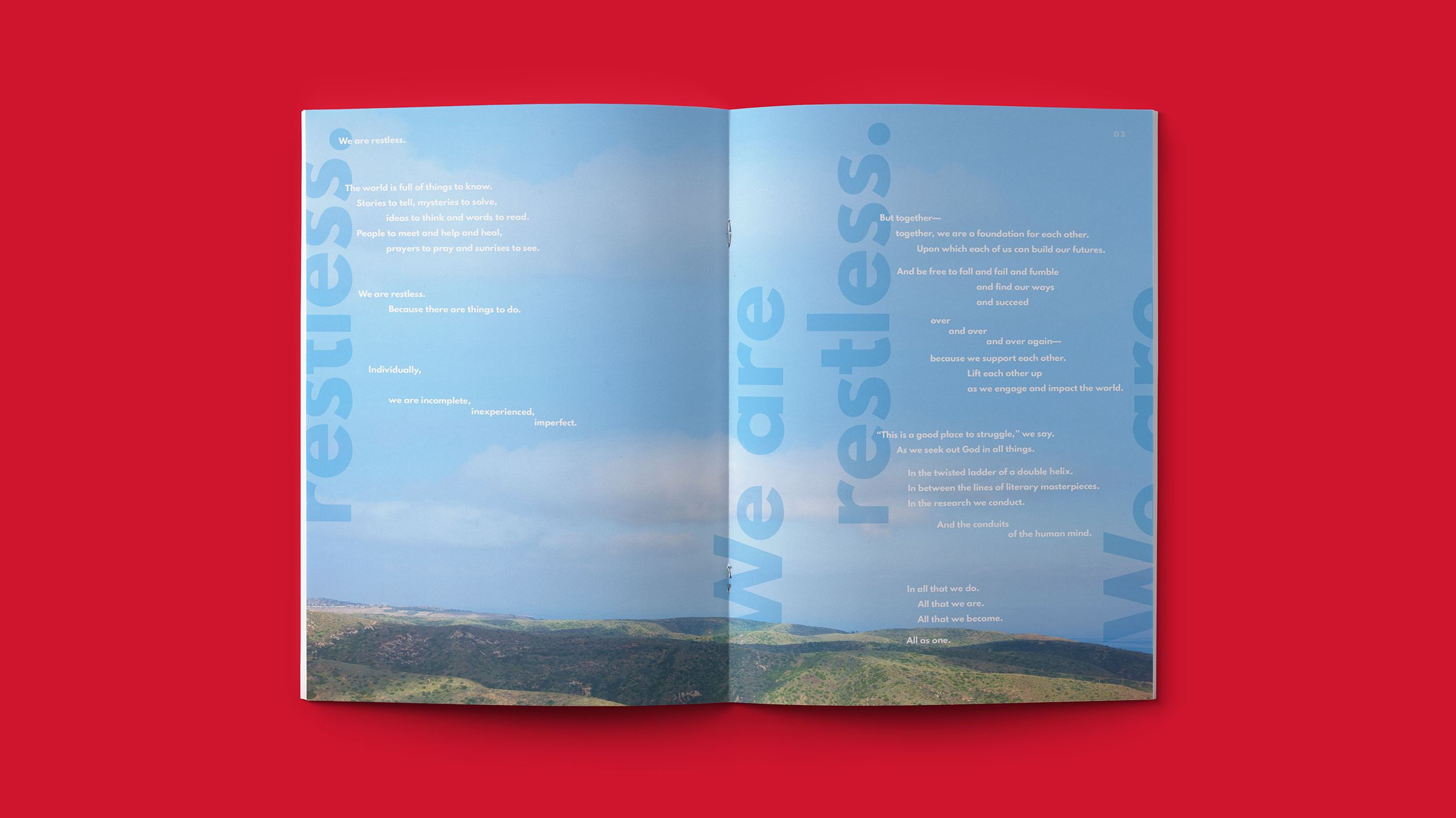The university was at a crossroads. As one of the top all-Christian universities in the nation still offering a fully faith-integrated education, they realized that it was time to either step up and stay true to who they are or give in to pressure and relax their commitment to their core values and convictions. We recommended they keep the faith. Resist becoming merely “Christian enough” like so many other faith-based universities have in the pursuit of growth. They agreed. A few months later, we let our “All As One” campaign out of its cage.