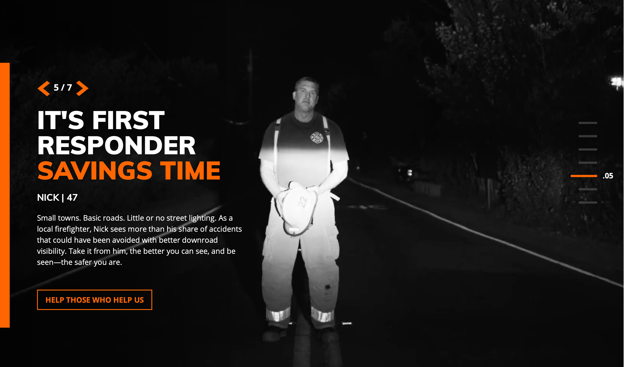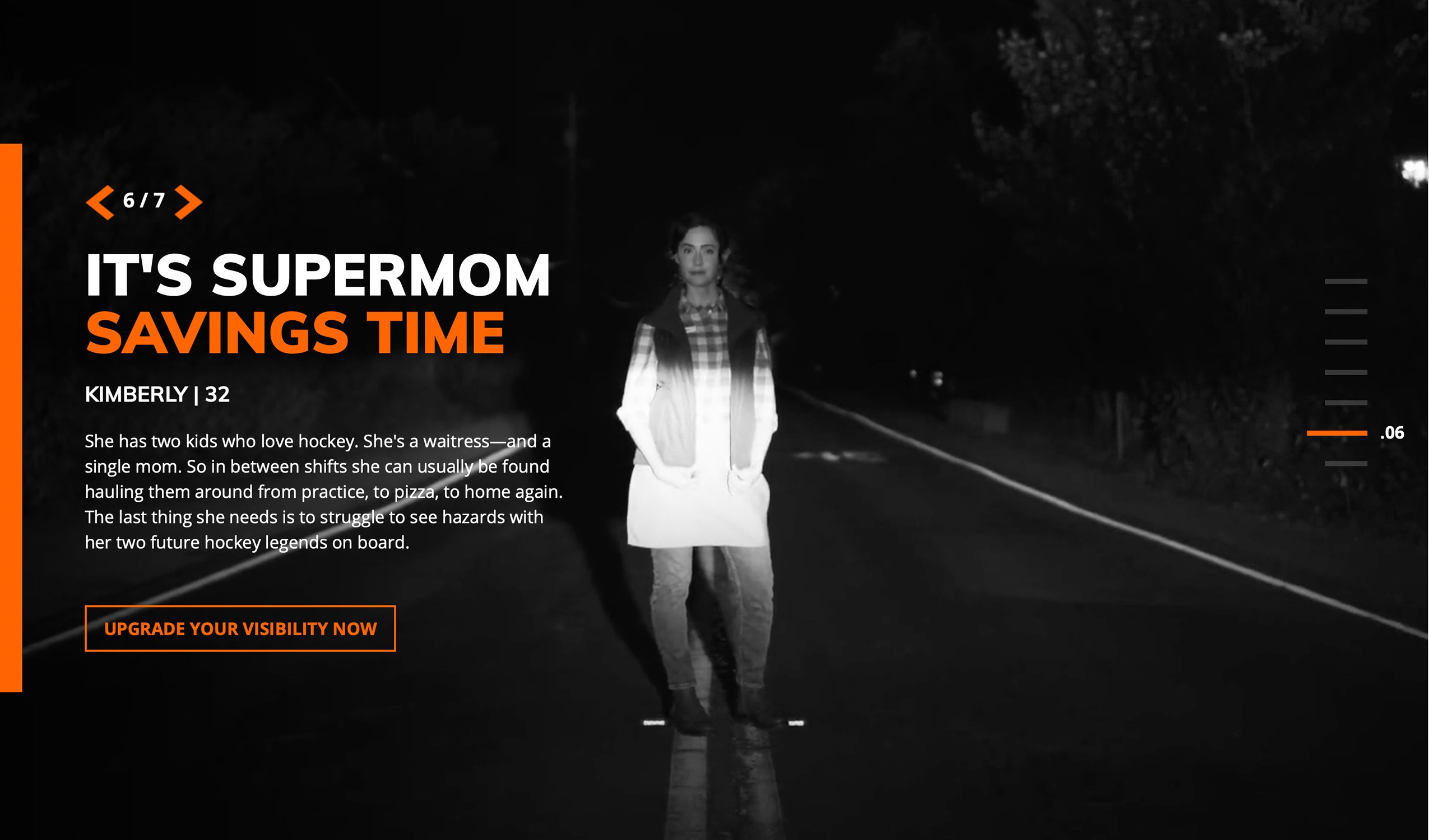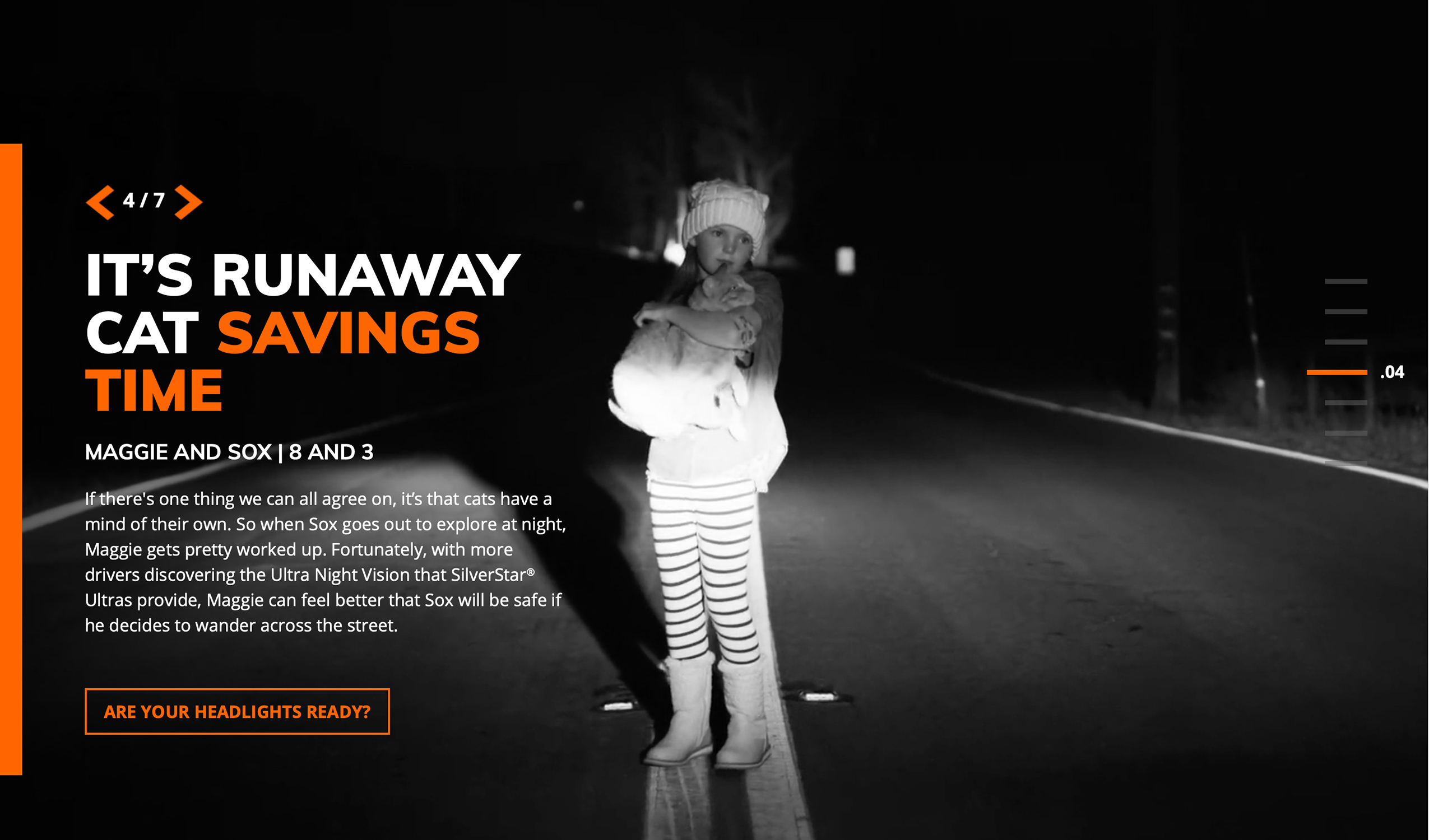 They make some of the highest quality automotive lighting products on earth. And totally dominate the category. 92% market share in the US and 80% in Canada. Increasing market share wasn’t our biggest challenge. Getting people to do something they never ever do—think about headlights—that was the challenge. We needed to turn indifference into awareness. Teach people how to achieve even greater clarity and down road visibility by upgrading their older, dimmer bulbs to fresh, brighter ones. And Think Farther Down the Road.